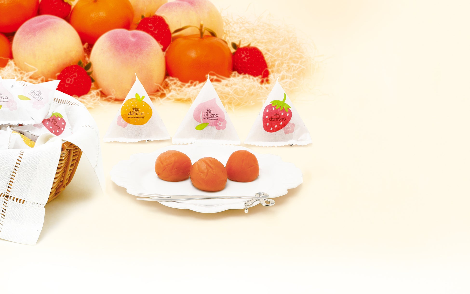 紀州産南高梅を使用した塩分控えめの梅干しに、国産のフルーツ果汁を加えた新感覚のフルーツ風味の梅干し「梅damono」。
