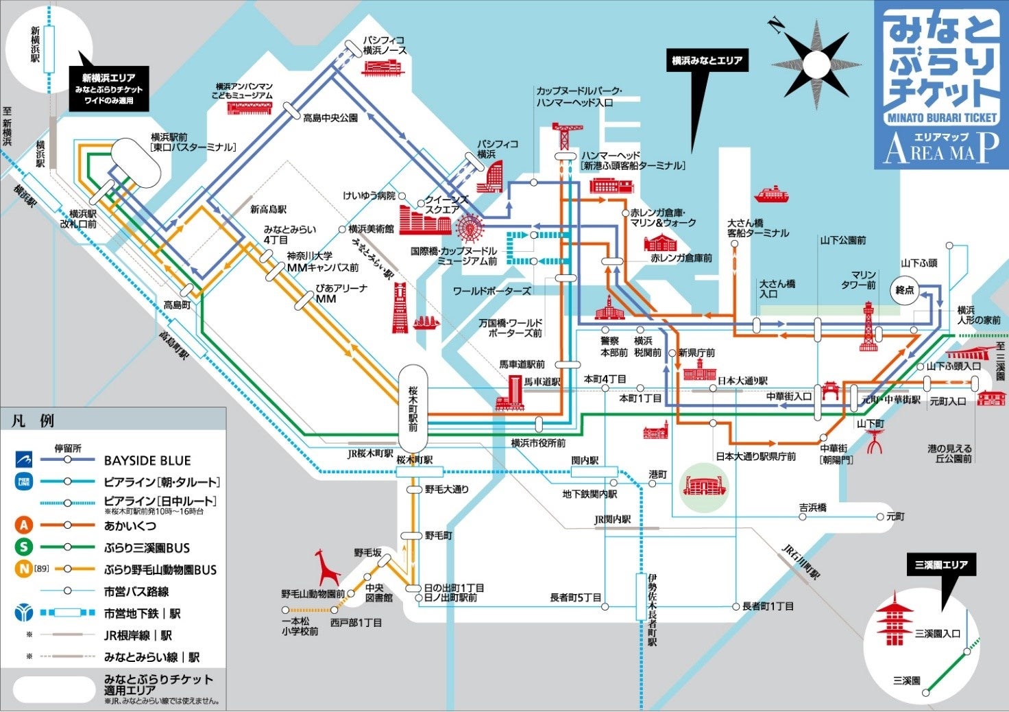 みなとみらい、山下エリア、元町、中華街や横浜赤レンガ倉庫といった有名スポットにアクセスできます。