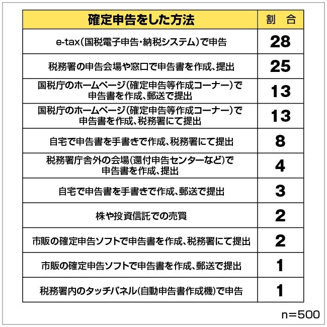 確定申告をしたことがある男女500人アンケート調査!「e-Tax」利用は28%