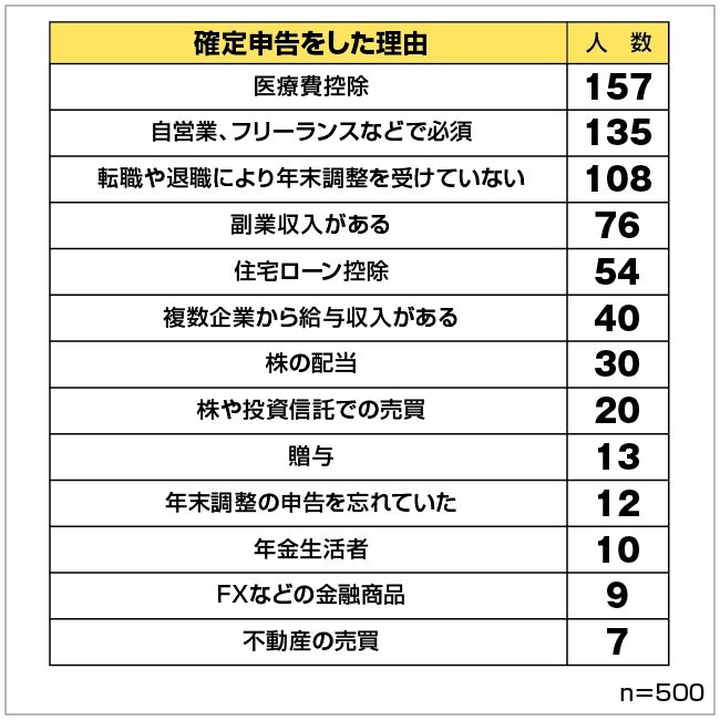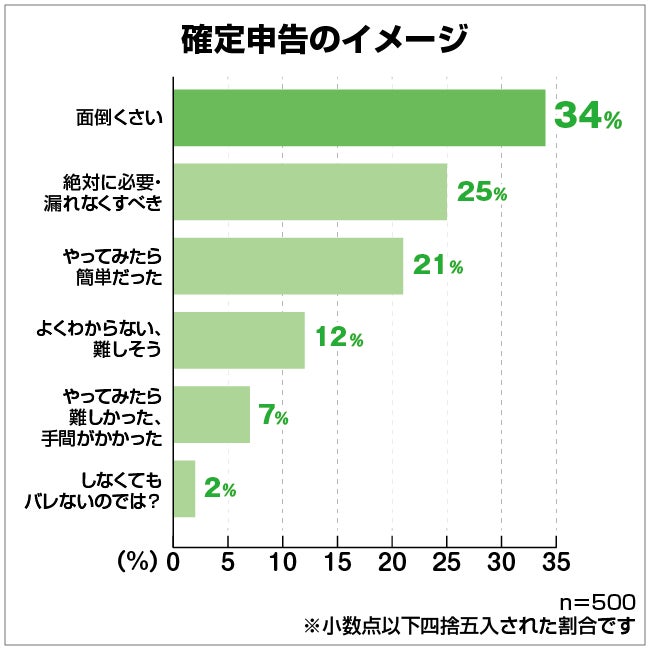 「確定申告経験者のアンケート(自社調べ)」では、20歳以上の男女500人から確定申告についてのイメージなどを伺いました。