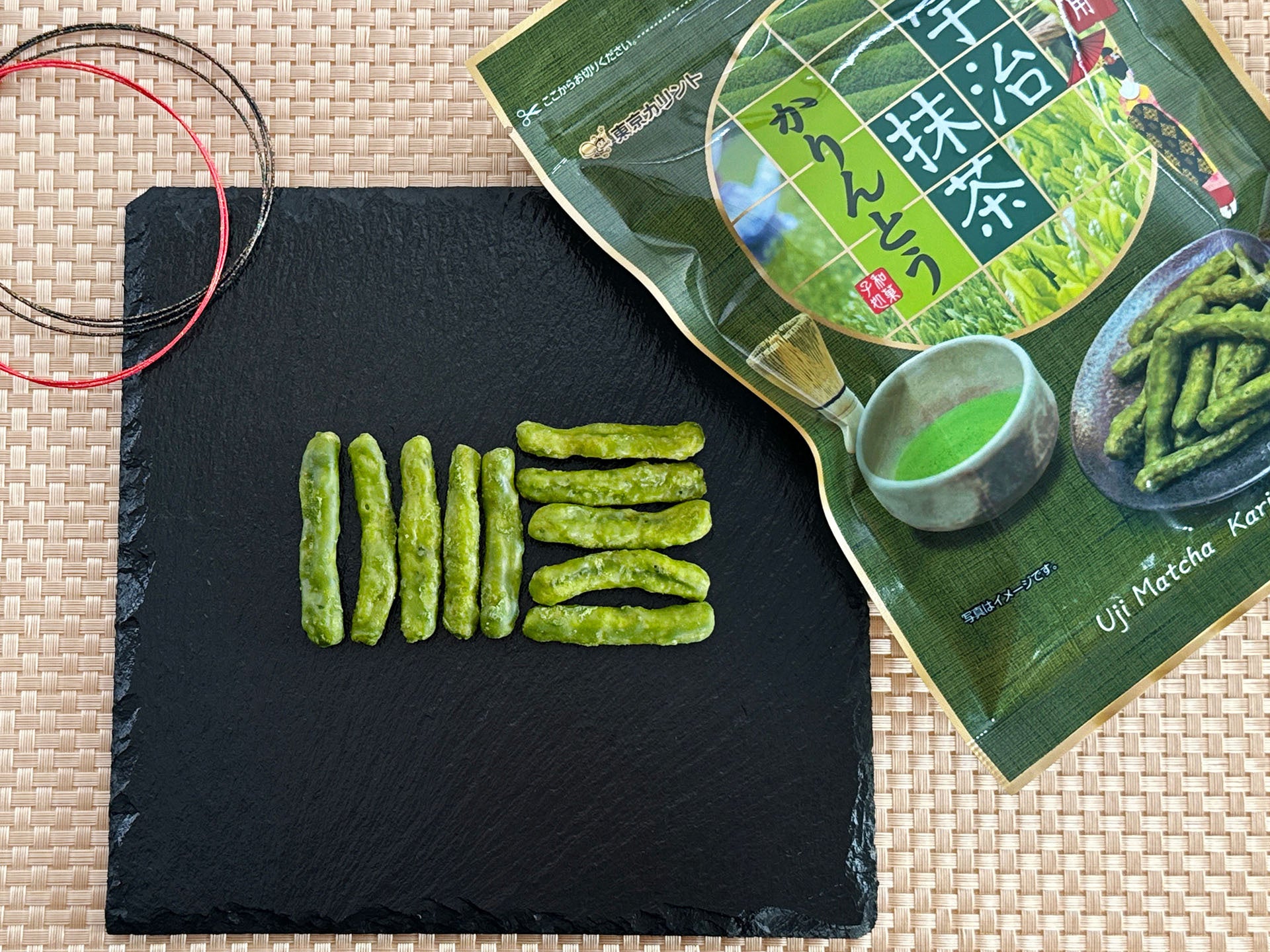 この碾茶を生地に練り込むことで、奥深い抹茶の魅力をかりんとうで表現しています。