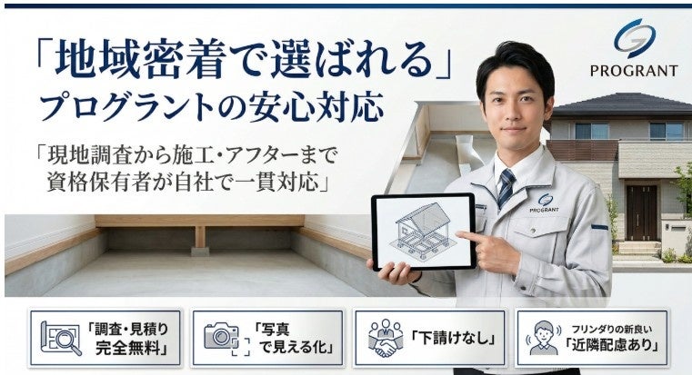 株式会社プログラントでは、福岡・熊本・佐賀を対象に、シロアリ被害の有無に加え、床下の湿気や木材の状態まで確認する無料点検を実施しています。