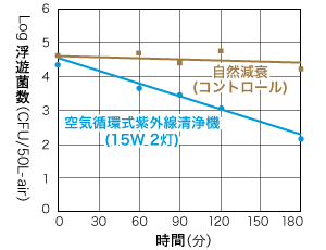 空気循環式紫外線清浄機を運転することにより浮遊ウイルスをどの程度除去できるかを試験チャンバーを用いて評価。