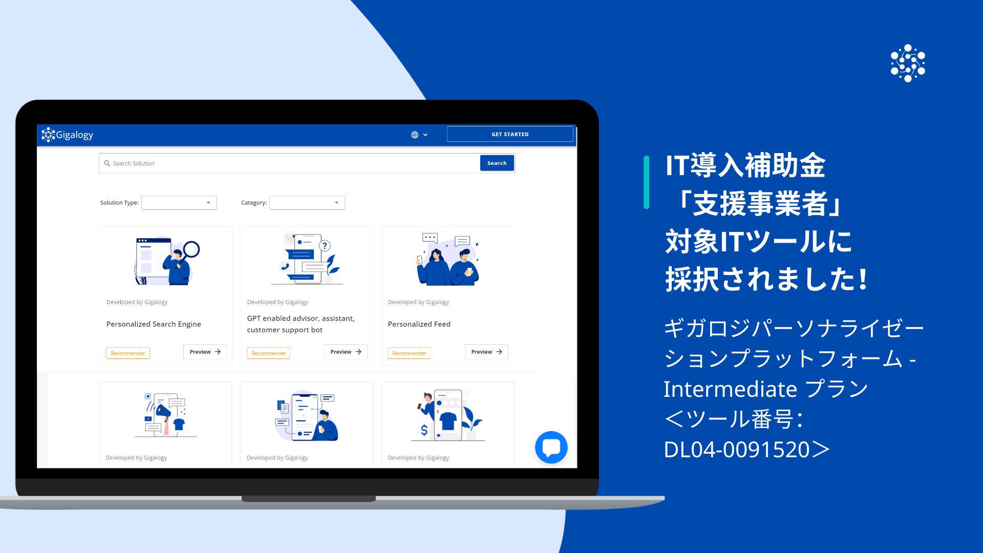 AIパーソナライゼーション提供のギガロジIT導入補助金「支援事業者」に採択される