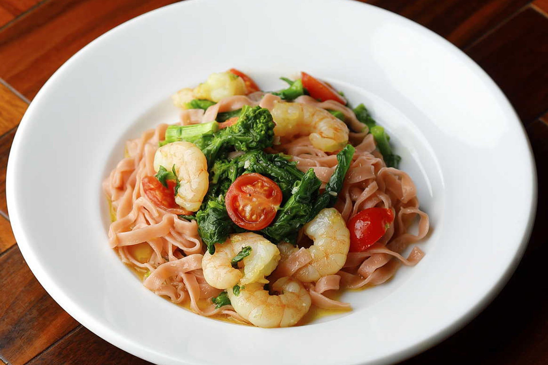 桜香る手打ちパスタ 小海老と菜の花のオイルソース