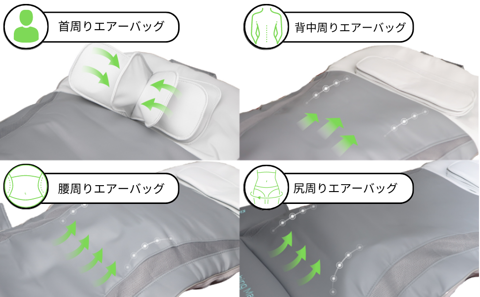 - 首・腰・背中と任意の部分を集中的にアプローチ可能