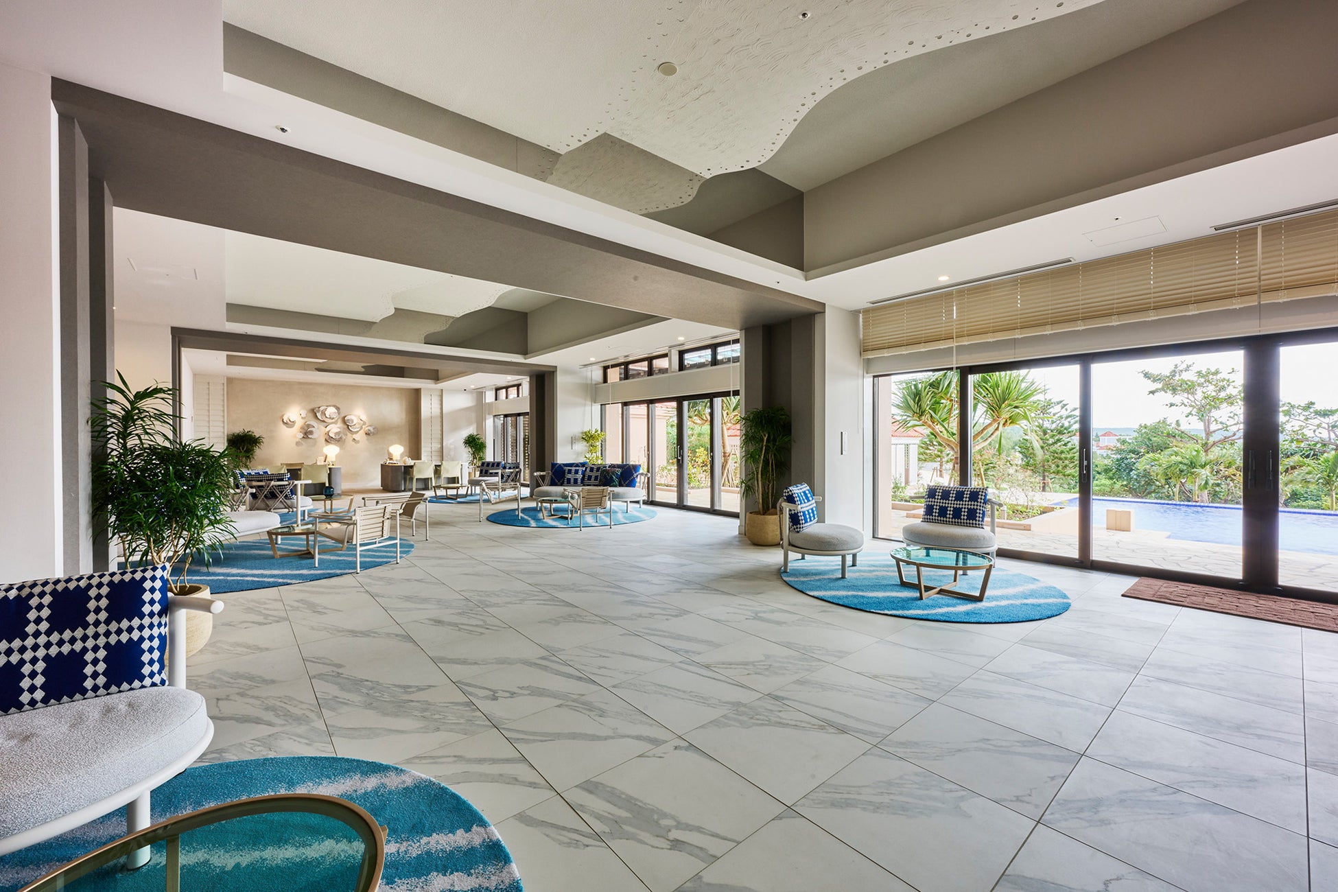 ロビーラウンジの広い窓の向こうには、南国の緑豊かなガーデンテラスと、オーシャンビューの景観が広がります。またガーデンテラスには温水対応のホテルゲスト専用プール、採暖室、プライベートカバナが備えられ、季節を問わず南国の島時間を謳歌するリゾートステイをお楽しみいただけます。