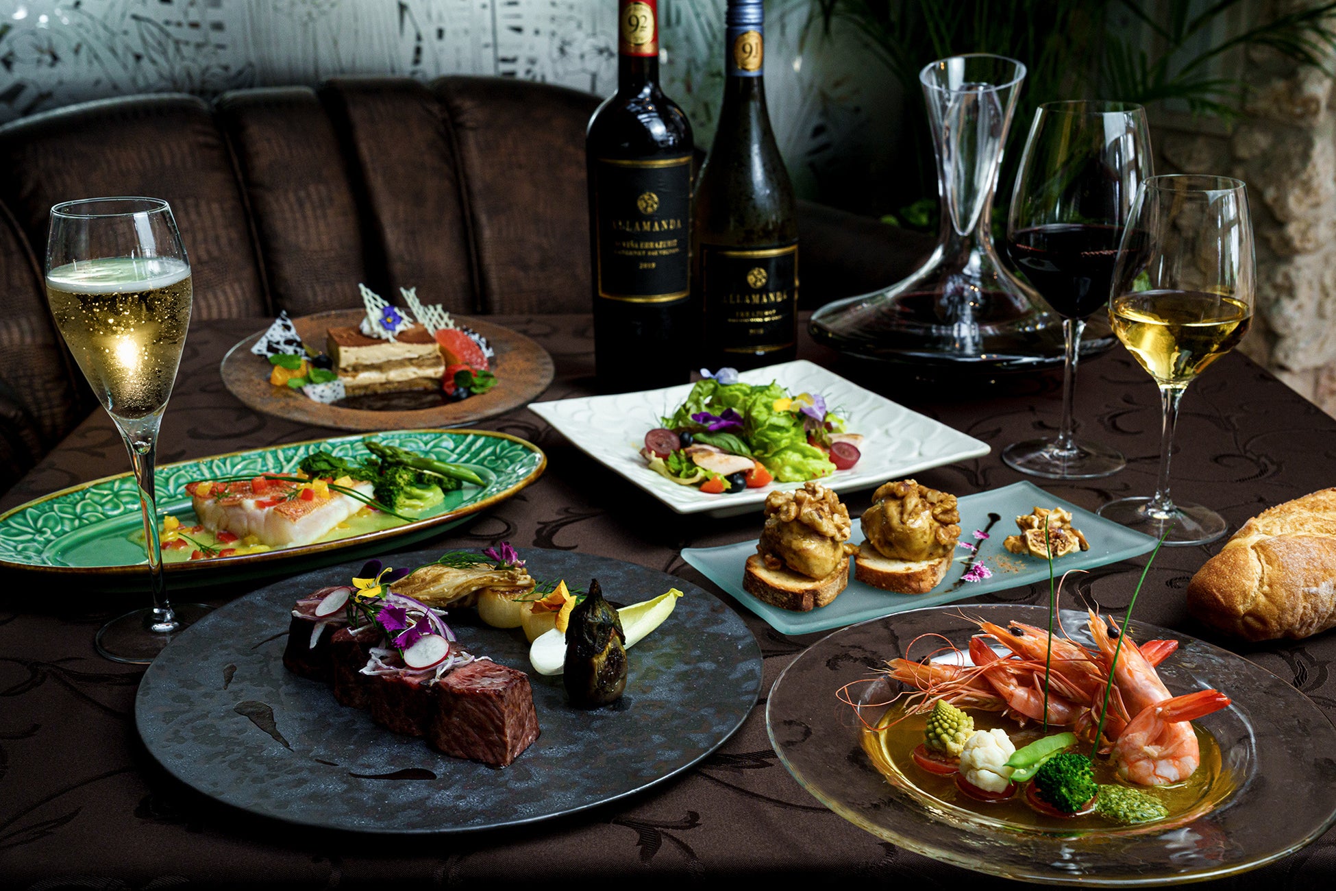 最新のカラオケ音響設備が揃う12の個室では、仲間同士やパートナーとのプライベートなパーティが楽しめます。琉球食材をふんだんに使用した料理を、選りすぐりのワインと合わせてお楽しみください。