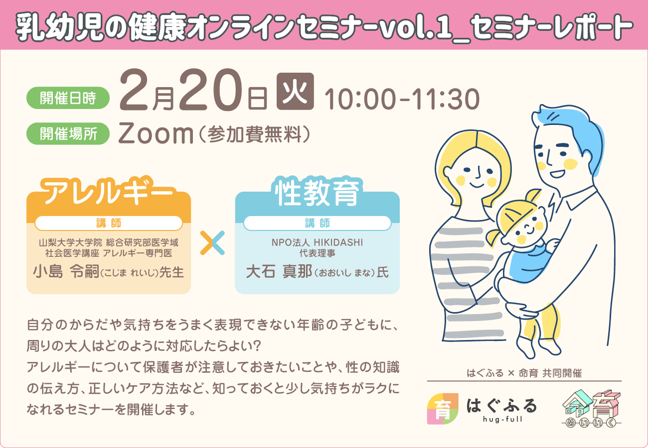 乳幼児の健康オンラインセミナー第1回目のテーマ「アレルギー」と「性教育」のセミナーレポートになります。