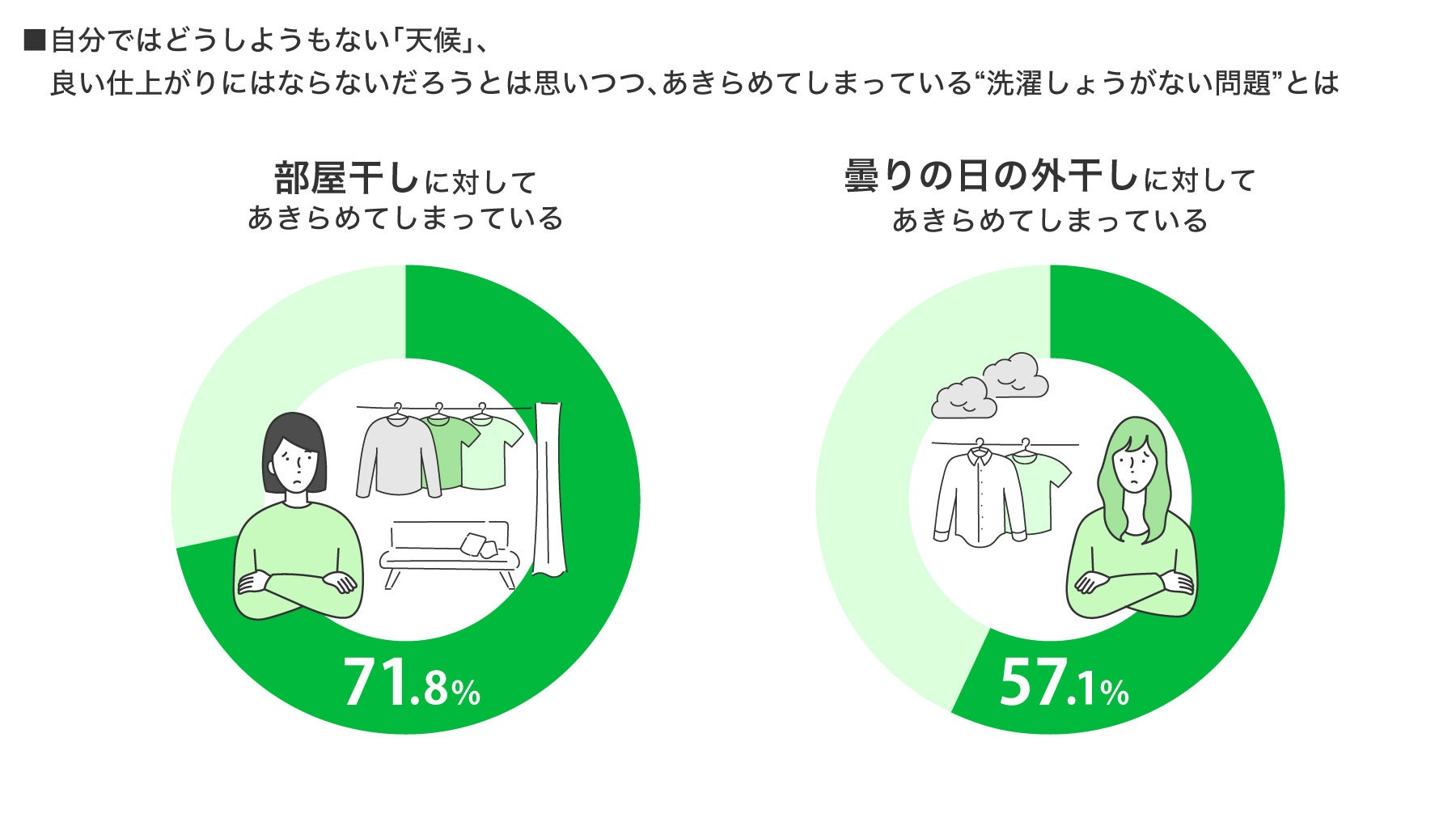 「部屋干し」:71.8%、「曇りの日の外干し」:57.1%
