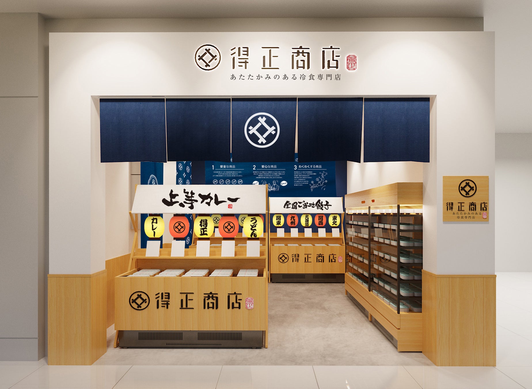 「あたたかみのある冷食専門店」をコンセプトのもと、日本中からセレクトした冷凍食品を、パートナーシップを組む、得正株式会社(以下、得正)の自慢のカレーと一緒に提案いたします。