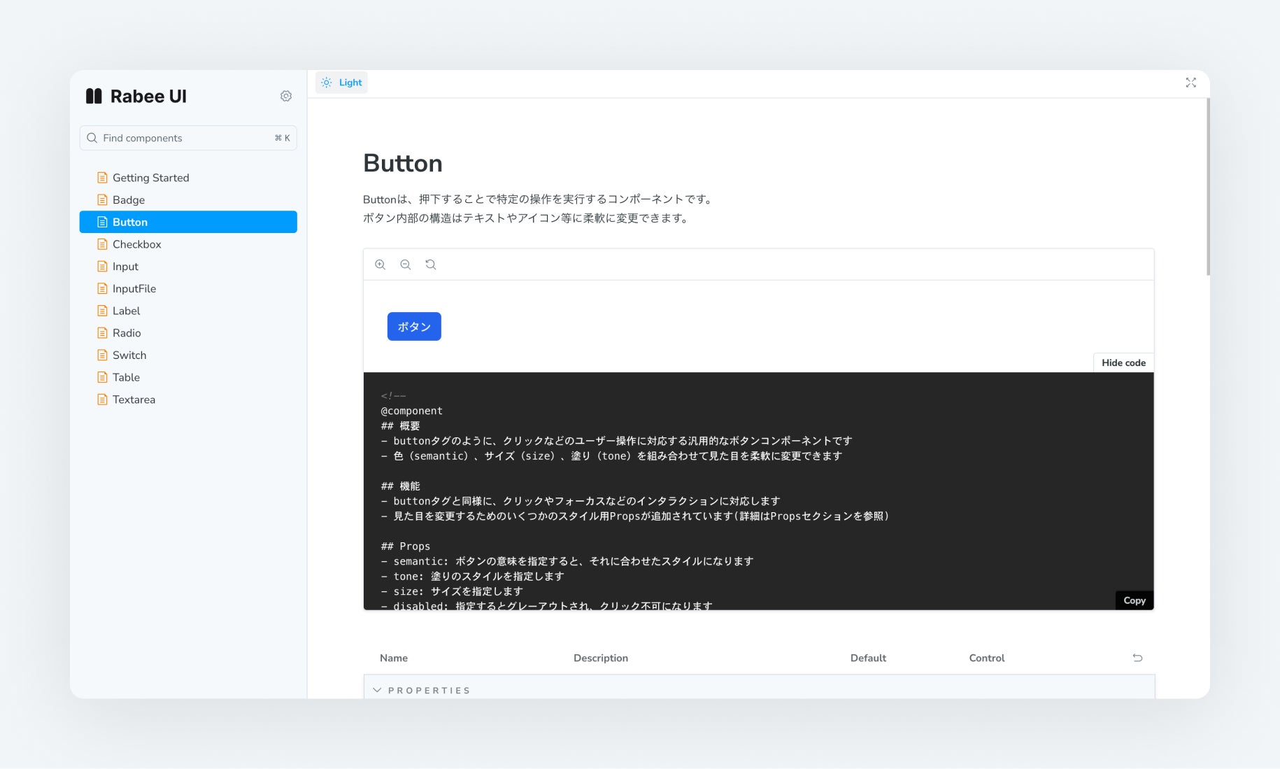 Rabee UIとは、Svelteプロジェクト用に設計されたUIコンポーネント集です。公式ドキュメントページから必要なコードを自分のプロジェクトにコピーするだけで使いはじめられます。