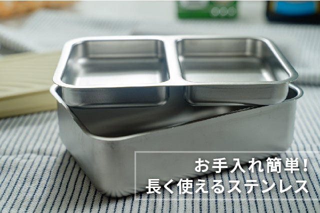 Double Boxはステンレス容器ならではの、軽くて壊れにくい、おかずのにおいが残りにくい、汚れが簡単に落ちる...と、多くのメリットを持っています。とにかく汚れがつきにくく、さらに死角のないシンプルなデザインのため、カビや油汚れを防ぎ、家事や仕事で疲れた後に洗うのもストレスフリー。