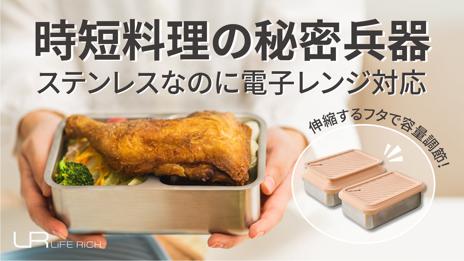 電子レンジでの調理を可能にした、画期的なステンレス容器です。これ一つで温める、焼く、蒸すなどの調理ができ、時短料理に最適。作り置き料理の保存にも、お弁当箱にもピッタリの容器です。調理・保存・食事まで完結できるため、容器を変える手間を無くし、お料理を「もっと楽に、もっと楽しく」を実現します。