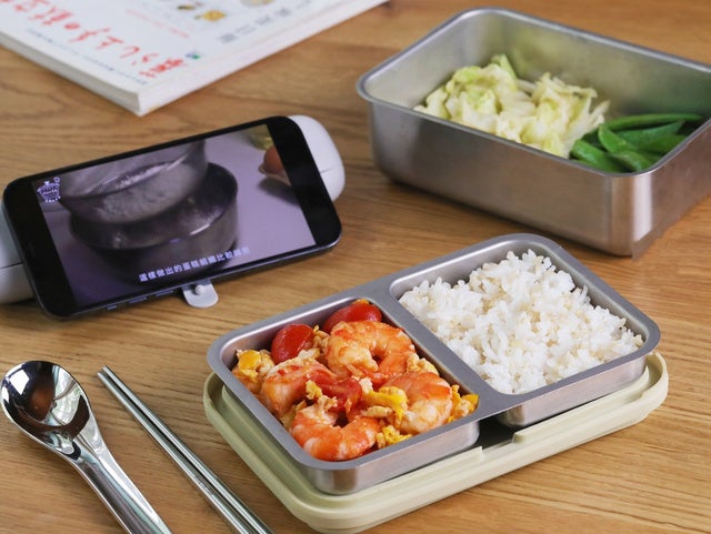 プレートを使っておかずを最大三か所に分けることができ、移動中食材が動いて味が混ざる心配もありません。お弁当詰めたての時と同じ見た目を保ち、電子レンジで温められるため、出先でも温かいお料理が楽しめます。 外でも美味しく食べられるよう、専用カトラリーとランチバッグも用意しました。