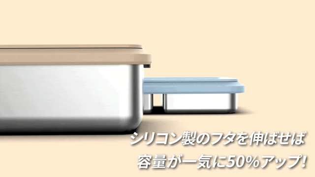 フタはシリコン製で伸縮するため、自由に容量調節が可能です。容量は最大で50%アップするので、作り置きの料理を作りすぎても心配ありません。プレートを取り出して、一つの容器として使うこともできるため、残り物のおかずを保存するのにもピッタリ。もう、様々な容量の容器を揃えなくても大丈夫です。