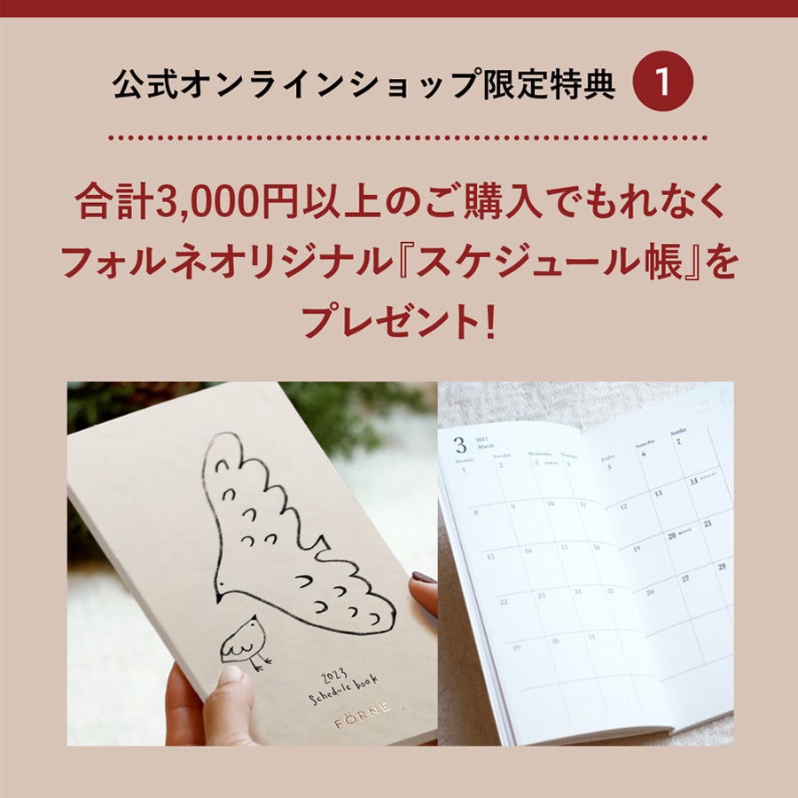 合計3,000円以上のご購入でもれなくフォルネオリジナル『スケジュール帳』をプレゼント!