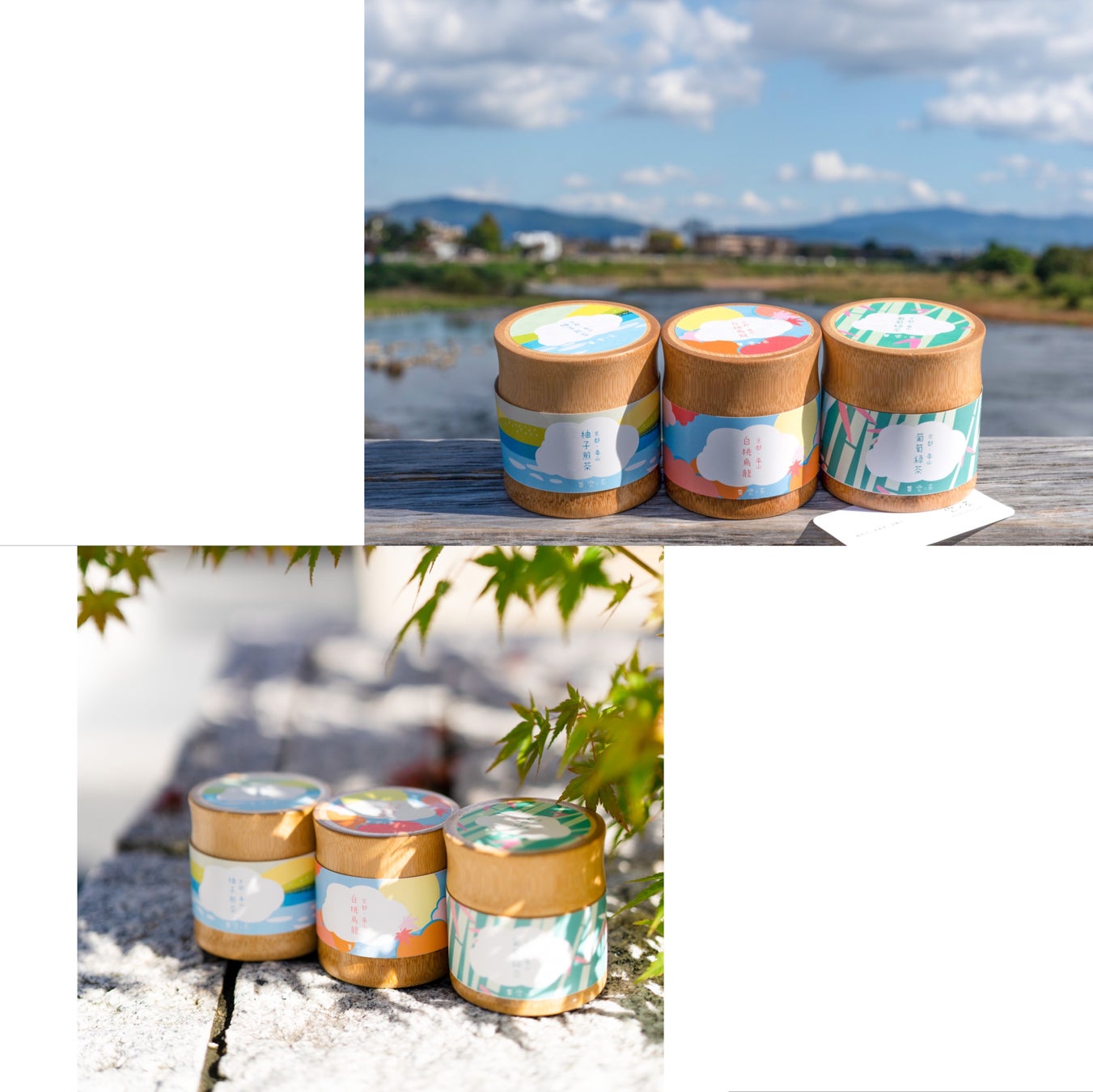 白桃烏龍、柚子煎茶、葡萄煎茶のお土産は三年坂店と同じ物を販売しております。