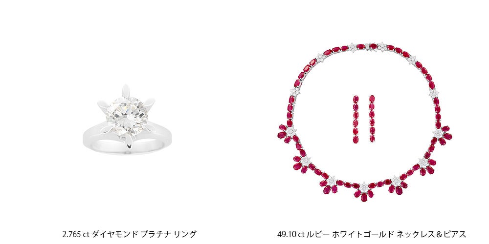 ■ジュエリーからは、2.765 ctの上質なダイヤモンドリングや、49.10 ctのルビー ネックレス&ピアス、その他アンティークジュエリーが出品されます。
