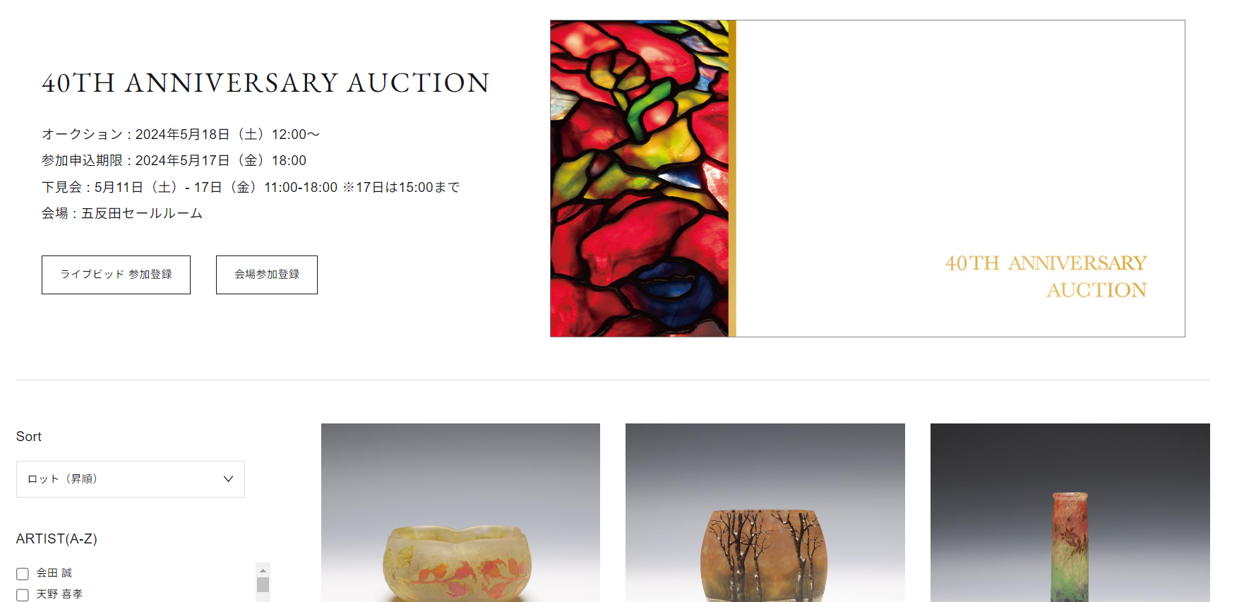 5/18(土)創立40周年記念 美術品オークション開催 | 5月11日(土)から東京にて下見会開催【入場無料・予約不要】