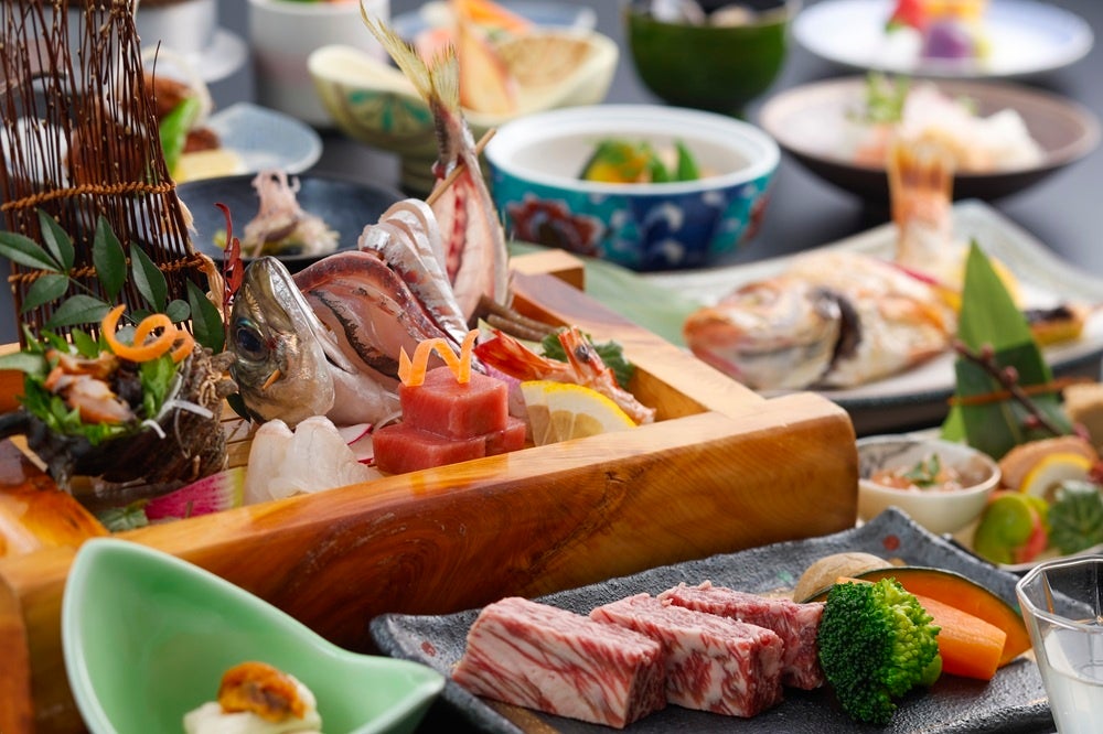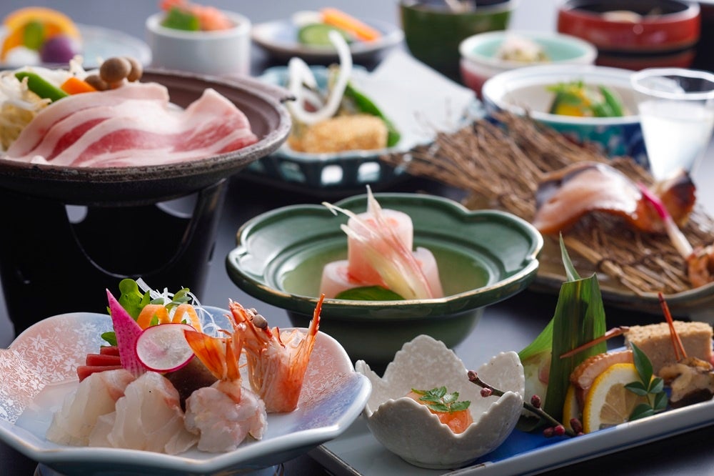 地元・山陰の旬の味覚を堪能できる会席をいただく真ん中のグレードのお料理です。 気軽なご宴会からご家族のお祝いまで、幅広くご利用いただけます。