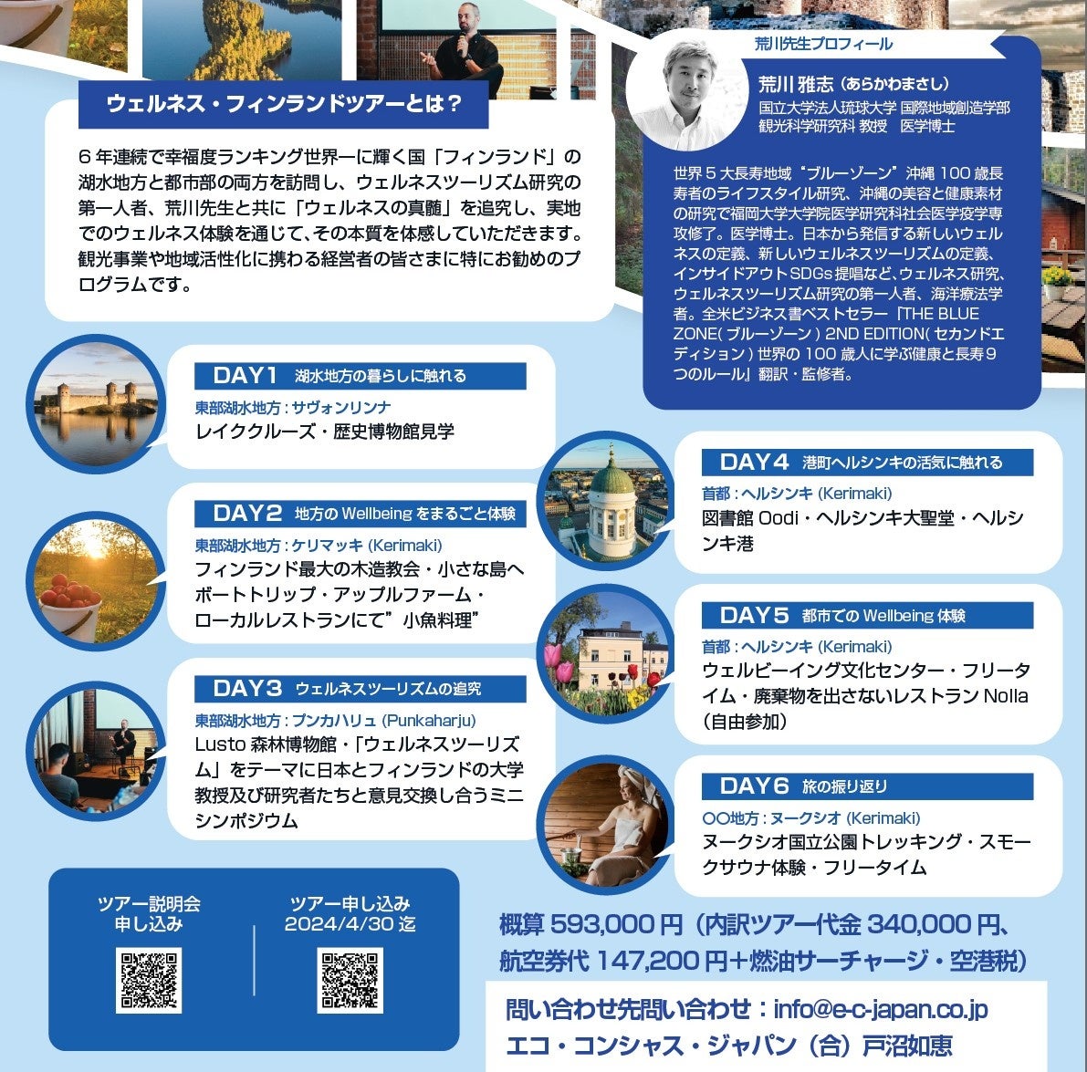 『再生への旅 - ウェルネスの真髄を探る、荒川先生と行くフィンランドツアー』開催決定!サステナビリティを超えた「旅のありかた」を探る、ウェルネスツーリズム研究第一人者と行くスペシャルな旅を5月に実施!