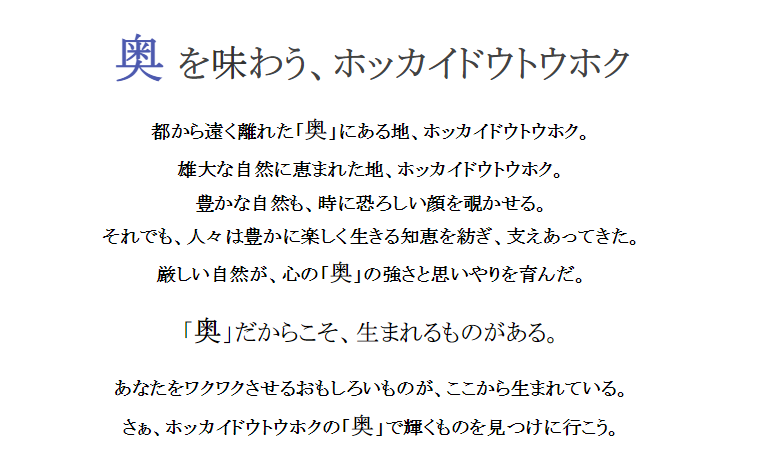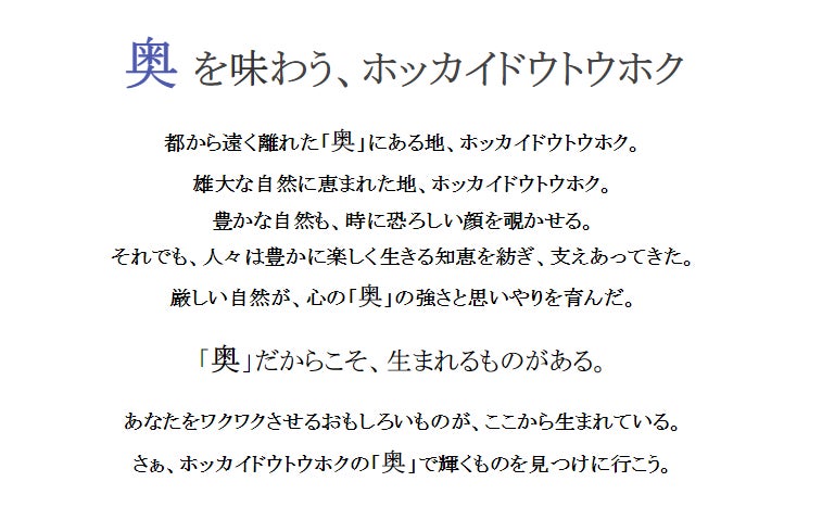 コンセプトは「奥を味わう、ホッカイドウトウホク」
