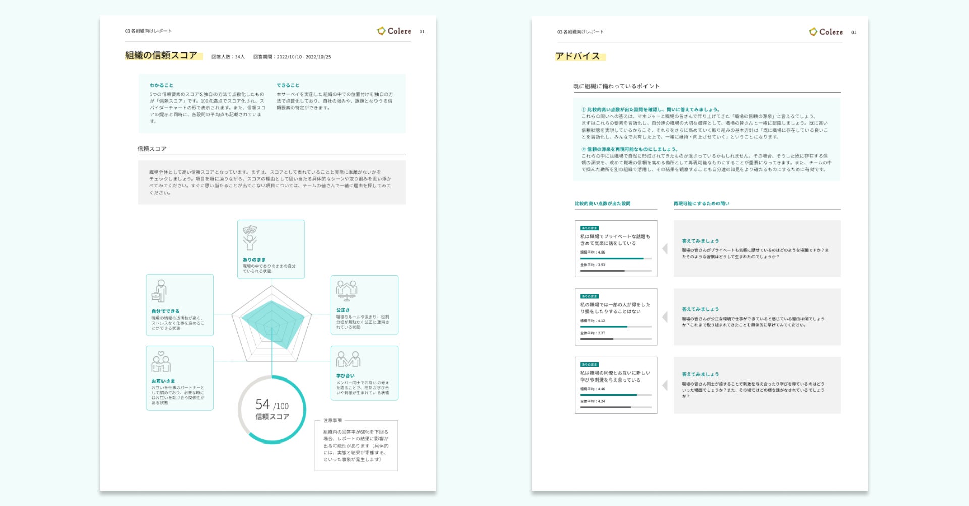 ・結果レポートの見方の解説により、チームを自分たちでどうやってよりよくしていくか具体的な打ち手が出せた