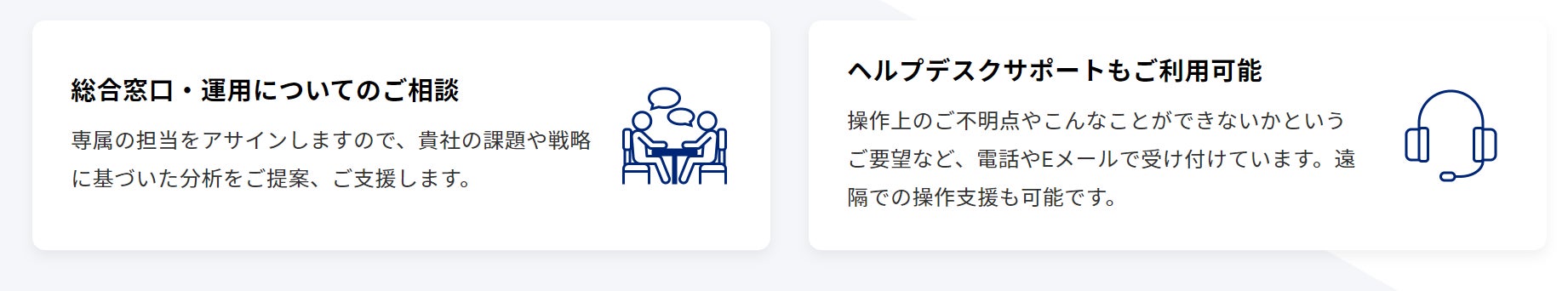 キャンペーンでのMarketAnalyzer™のご利用でお客様が成果を出せるよう、MarketAnalyzer™シリーズで提供しているサポート体制を、キャンペーンでもご利用いただけるようにいたしました。