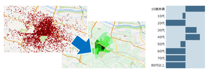 顧客データをインポートすることで、町丁目単位で自社のシェアを可視化でき、販促エリアの定義や来店誘導のための販促エリアの探索等に活用することができます。