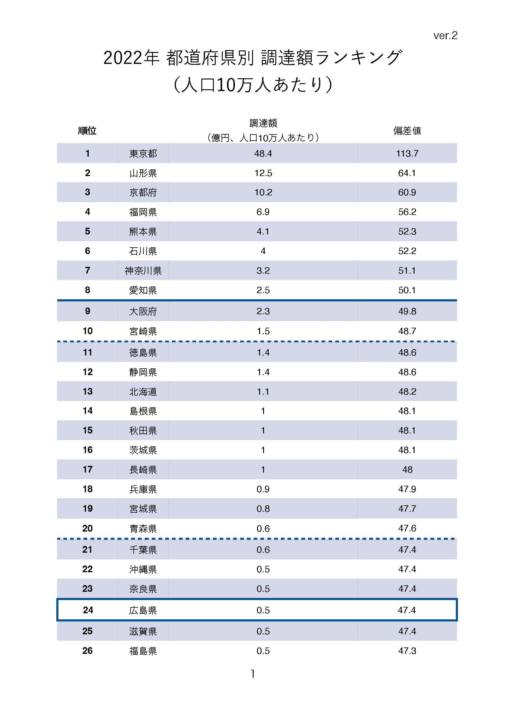 - 2022年都道府県別人口当たり調達額ランキング&偏差値