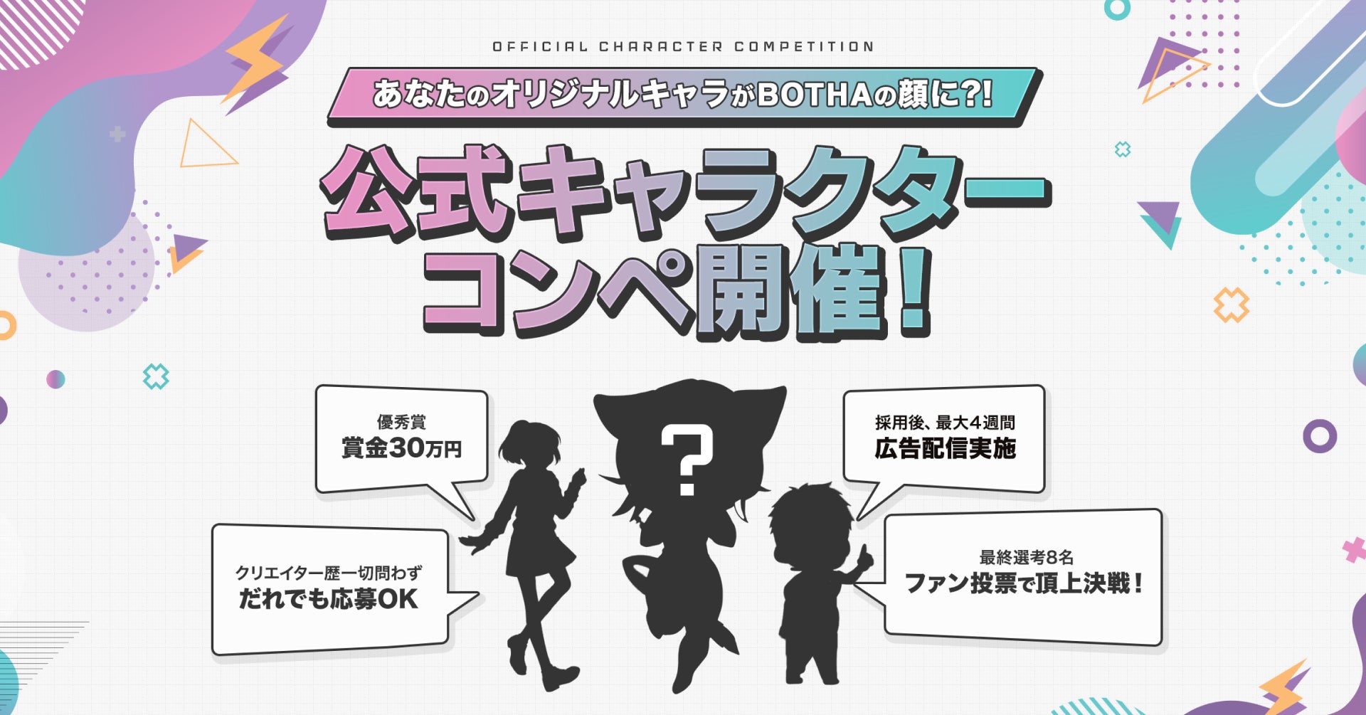 BOTHA(ボータ)ではクリエイターの皆様、ファンの皆様と「サービスを一緒に作り上げてく」というビジョンを掲げており、クリエイターの皆様が応募した作品から、ファンの皆様の投票で選定するという”参加型”のキャラクターコンペ形式でのイベント開催を決定いたしました。
