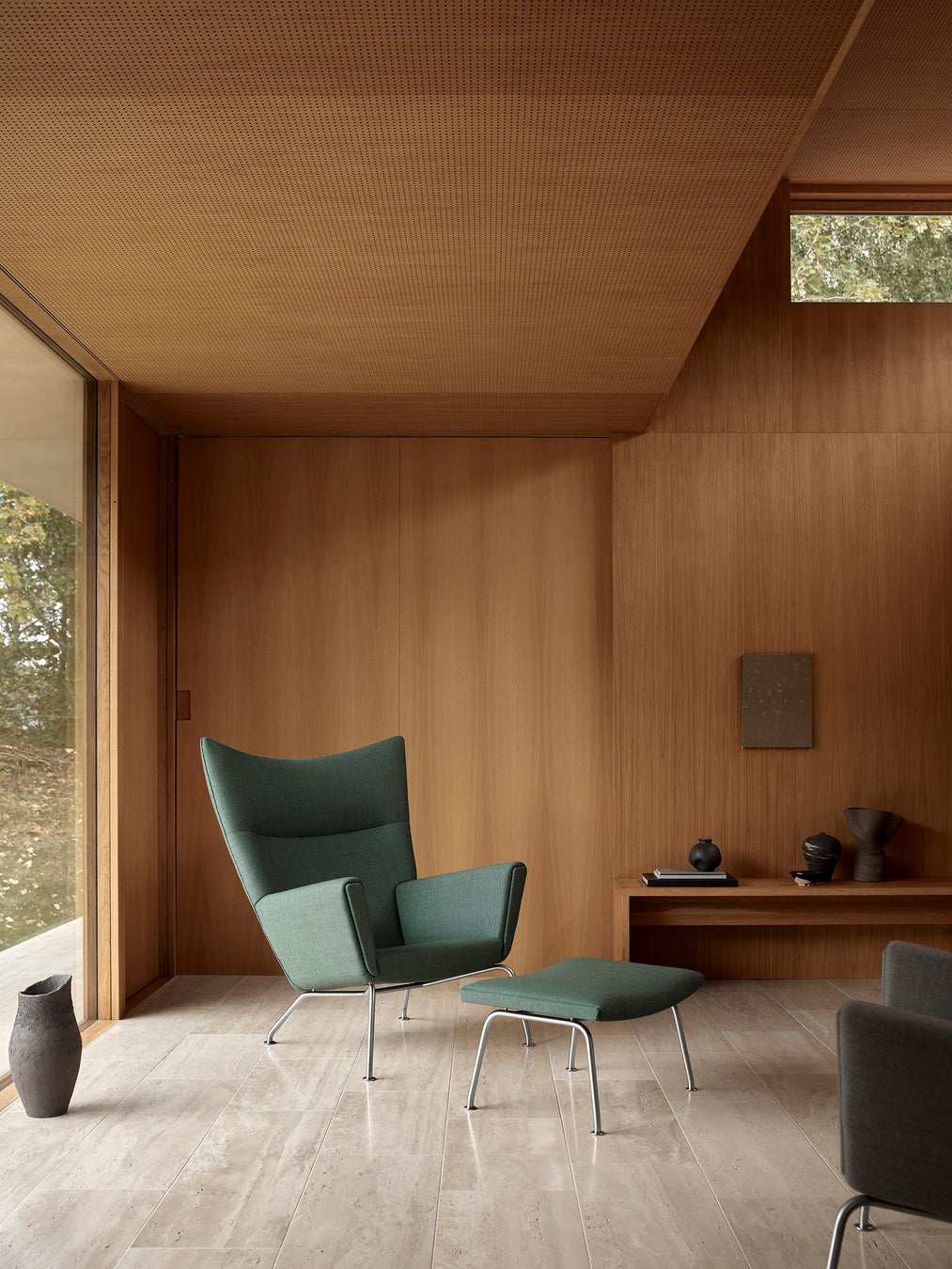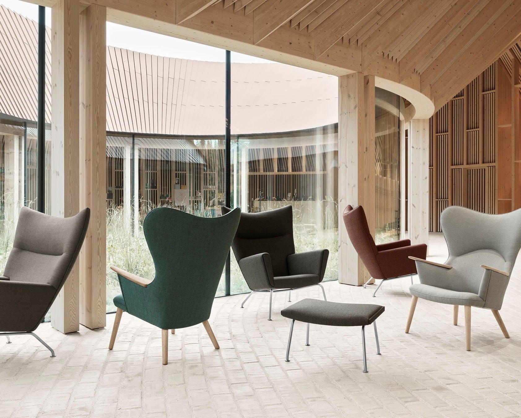 Gabriel社のプレミアムウール生地「Passion」をまとった、ハンス J. ウェグナーのハイバック・ラウンジチェア(CH78 ママベアチェア、CH445 ウィングチェア、CH446 フットスツール)が2023年9月末まで特別価格で登場します。