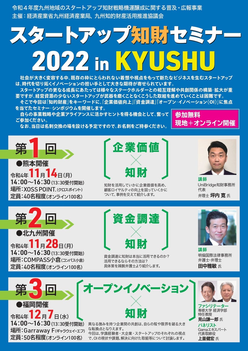 【参考】「スタートアップ知財セミナー2022 in KYUSHU」を開催します
