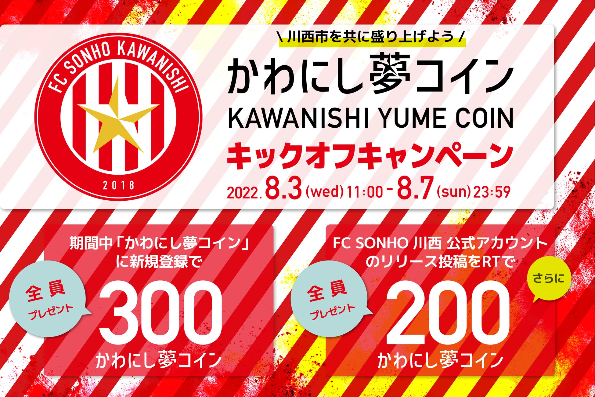 さらに!TwitterにてFC SONHO 川西 公式アカウントからのリリース投稿をRTしてくれた方全員に200かわにし夢コインをプレゼント!