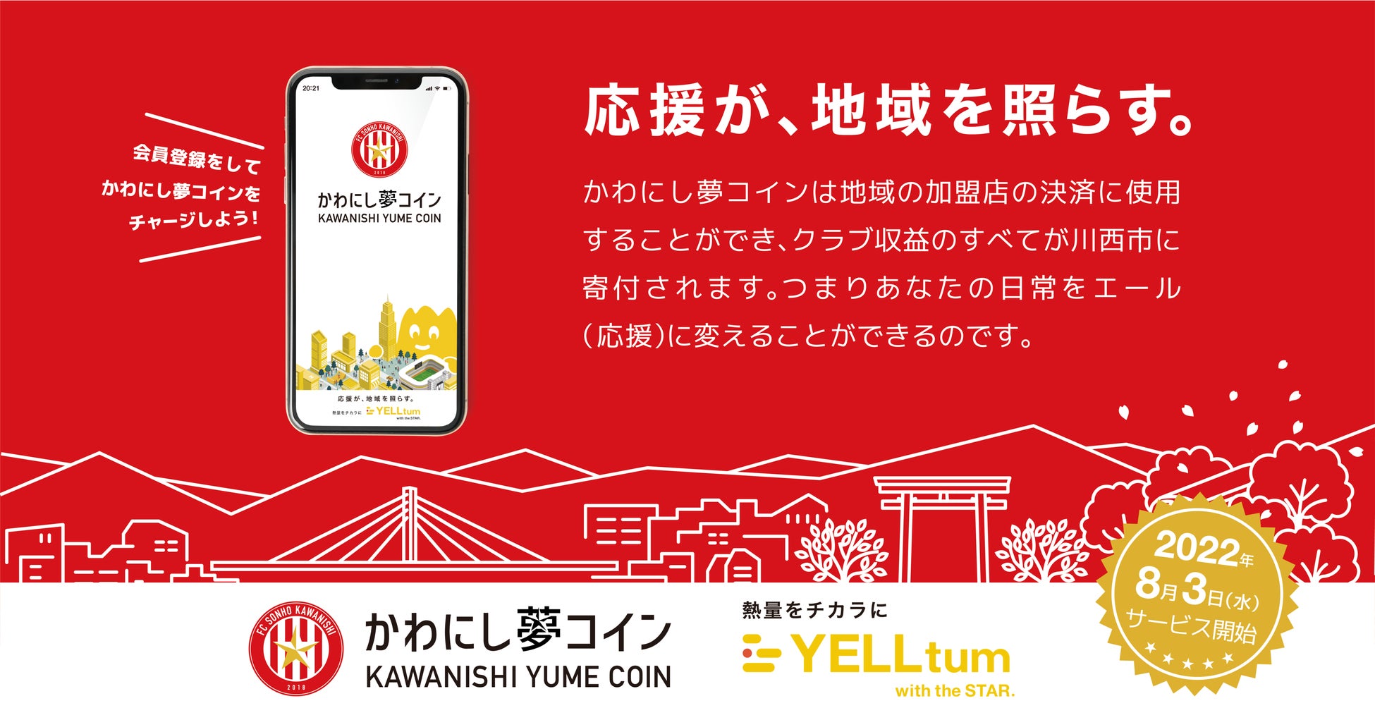 『かわにし夢コイン』の導入により、FC SONHO川西と地域の方々、街の店舗様との繋がりをより深く濃いものにしていきたいと考えております。