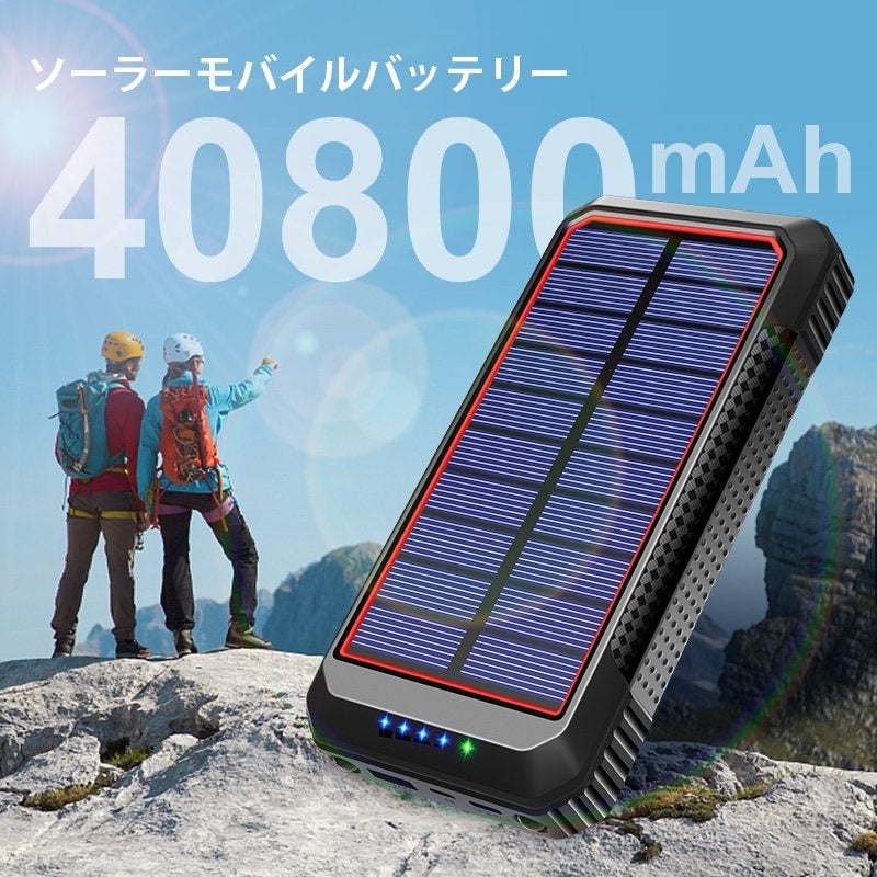 太陽光で充電ができ、同時に4台充電可能なモバイルバッテリー。災害時に電力供給が不足しても太陽光で充電ができるのは安心です。