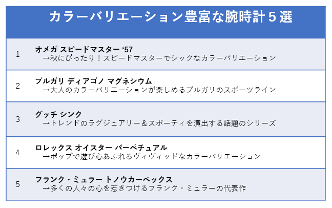 【腕時計市場調査レポート発表】海外高級ブランド腕時計のコレクションでカラーバリエーションが充実