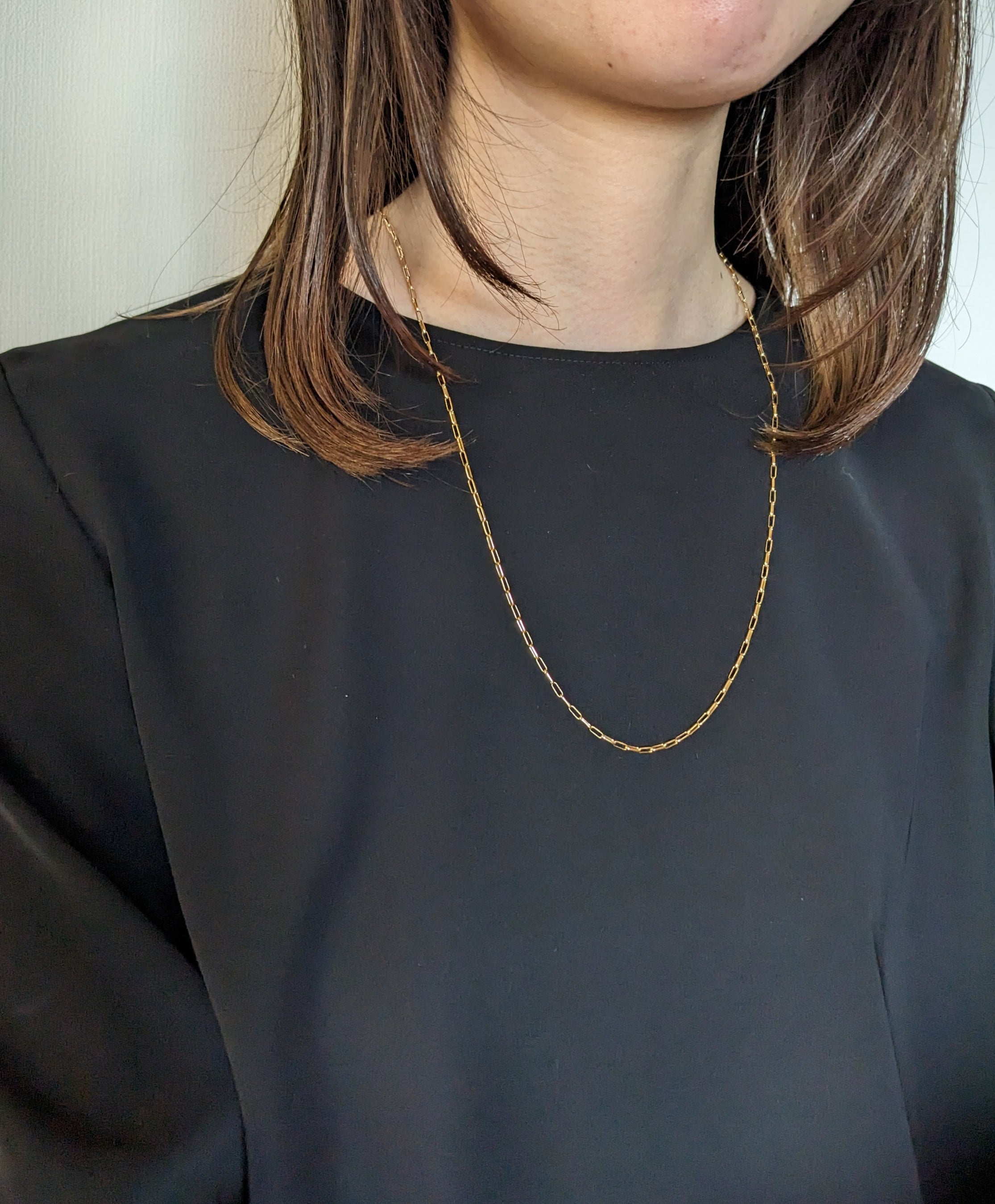 18金は肌にやさしく、使い込むほどに味わい深くなるチェーンネックレス。贈り物としても大切な人に贈ることができます。