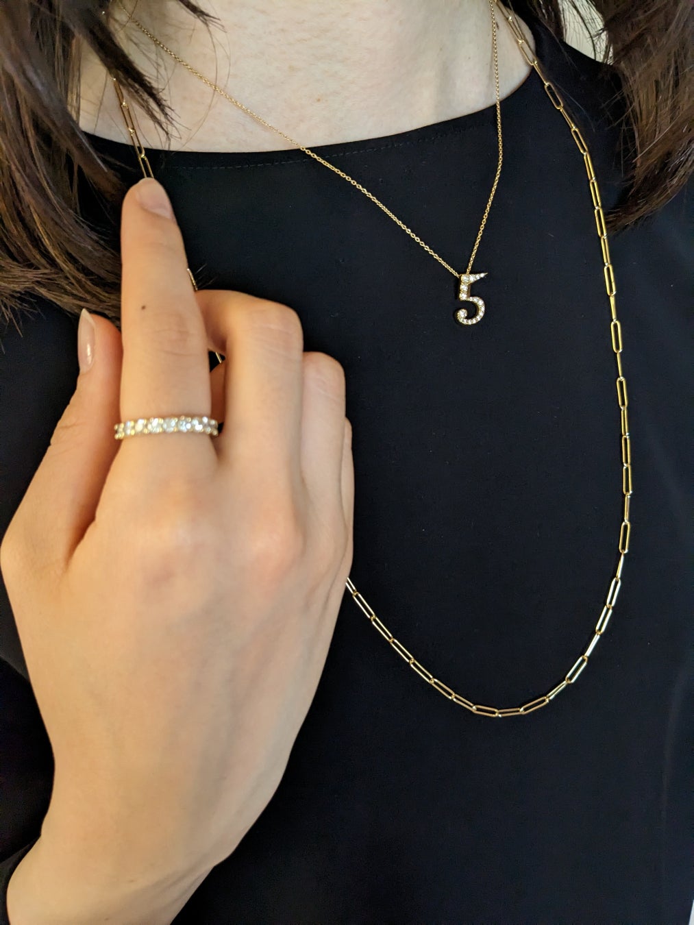 September5のナンバーネックレスに重ね付けするネックレスが欲しいというご要望にお応えし、お客様とご縁を繋いでいきたいというコンセプトから『TSUNAGU』とのネーミングをつけたチェーンネックレスです。