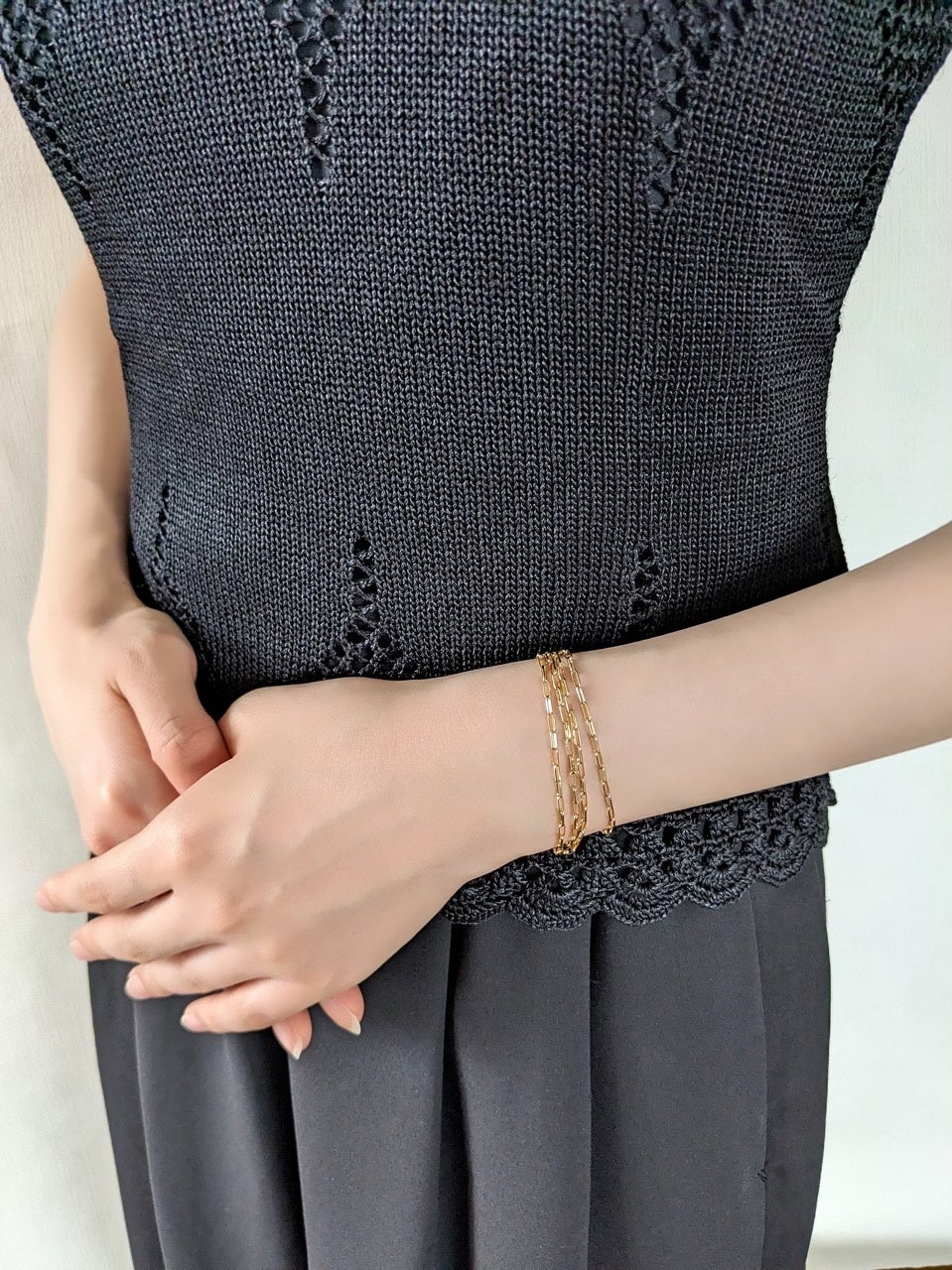 普段使いからフォーマルな場面まで幅広く対応し、1本でも重ね付けでもおしゃれに着こなせます。