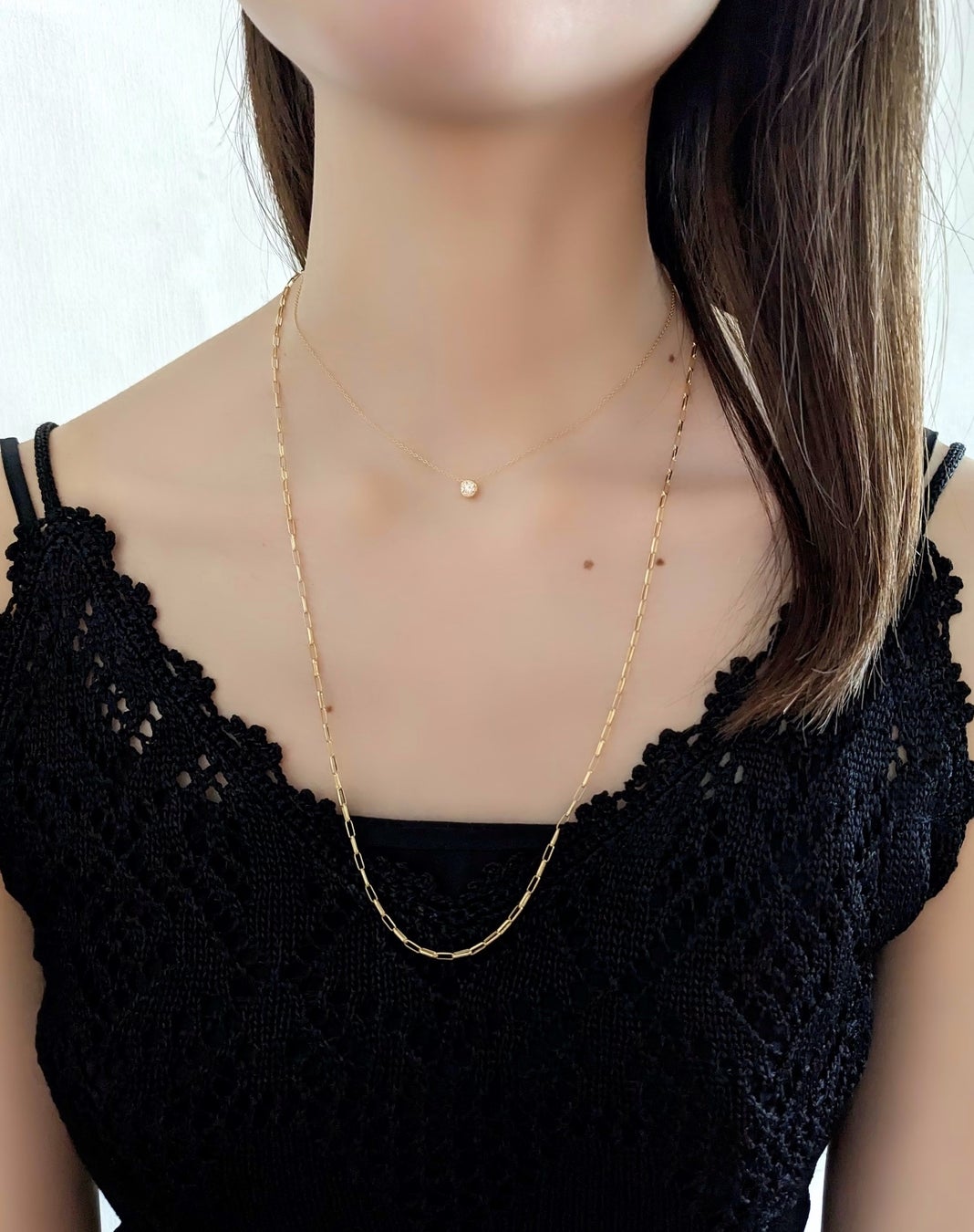 『Sparkle瞬70』さり気なく装う大人の女性にふさわしい18金チェーンネックレス。70㎝なので留金を外すことなく被って着用できます。シンプルなデザインで飽きがこなく、重ね付けに最適。お手持ちのネックレスに合わせてふさわしい長さでお使いになれます。