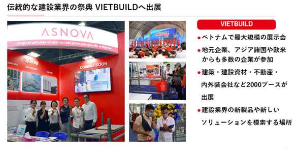 2022年6月にベトナムホーチミンで開催されたべトビルド(ホーチミン最大の建設関係の展示会)で、当社もブースを出展し、現地で直接くさび式足場についての生の声をヒアリングしました。その結果、非常に高い評価を頂きました。