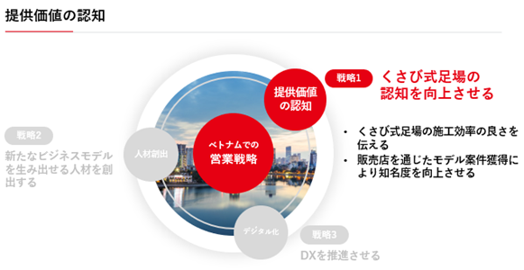 既述の通り日本製のくさび式足場の利便性や評価については好評を頂いております。一方で、まだまだ施工性や品質の良さを伝えきれておりません。くさび式足場のブランディングを高め、ベトナムでの知名度を向上させます。