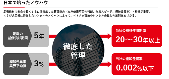 1つ目は、日本で長年培った足場レンタルの管理ノウハウです。