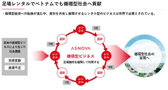 このようなことから、当社がベトナムでも、この足場レンタルを普及させることで、これらの社会課題を解決し、循環型社会の実現に貢献したいと考えます。
