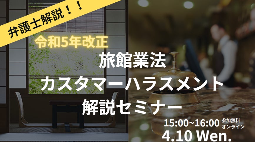 『令和5年改正旅館業法・カスタマーハラスメント解説セミナー』を4月10日(水)開催