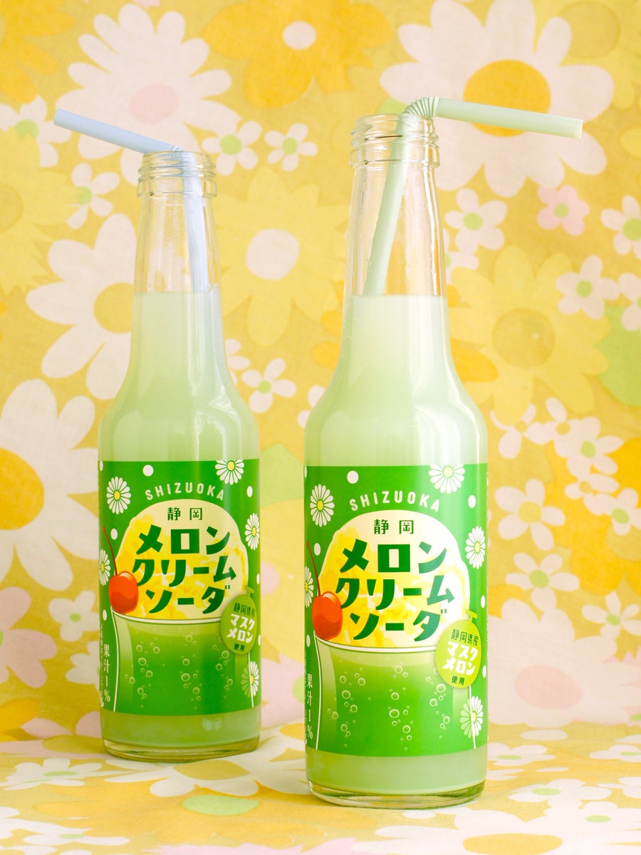 【こだわりの静岡県産マスクメロン果汁使用】昭和レトロな びん入りクリームソーダ、2025年2月23日(日)より新発売!