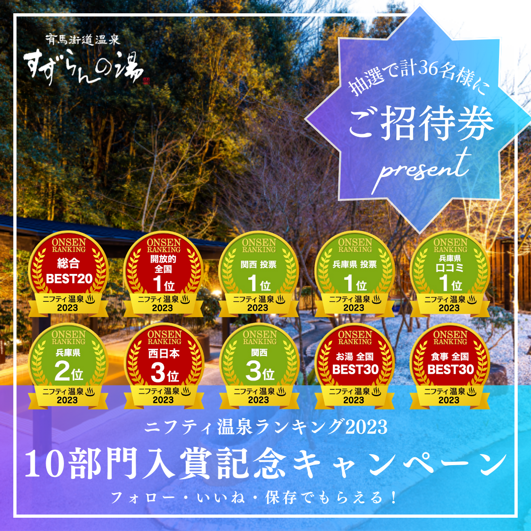 ニフティ温泉10冠受賞!有馬街道温泉すずらんの湯が全国&関西1位の受賞を頂きました!