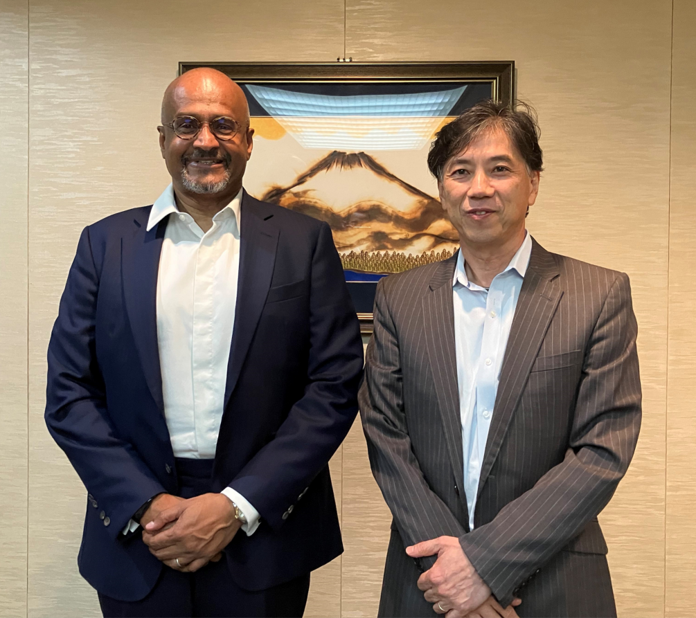 サカタインクス株式会社 代表取締役 社長執行役員 上野 吉昭氏(右)によるコメント
